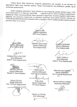 Gazze’deki insanlık dışı katliamı durdurmak ve insani yardım ulaştırabilmek için yapılması gerekenleri konuşmak amacıyla gerçekleşecek toplantı için partilerin Meclis’e sunduğu çağrı metninin ayrıntıları da ortaya çıktı. Söz konusu metinde Toplum Çalışmaları Enstitüsü’nün Gazze ile ilgili verilerine yer verilerek şu ifadeler kaydedildi: