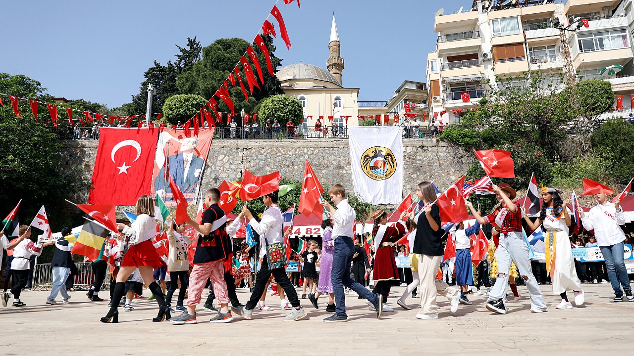 Öğrencilerin gösterilerini sergilediği etkinlik alanının girişine stant kuran Alanya Belediyesi, geniş katılımlı programda vatandaşlara Türk bayrağı dağıttı. Saygı duruşu ve İstiklal Marşı'nın okunmasıyla başlayan buradaki törende, günün anlam ve önemine ilişkin konuşma yapan İlçe Milli Eğitim Müdürü Yusuf Yılmaz, Ulu Önder Gazi Mustafa Kemal Atatürk'ün 19 Mayıs 1919'da Samsun'a çıkıp, milli mücadeleyi başlattığını hatırlatarak, 23 Nisan Ulusal Egemenlik ve Çocuk Bayramı’nın en önemli miras olduğuna vurgu yaptı. Yılmaz, "Bayrak sevdası ve bağımsızlık tutkusu, bir milleti şaha kaldırmıştır. Türkiye Cumhuriyeti'nin ve yüce milletimizin umudu, neşesi ve güvencesi sevgili çocuklarımız, adaletin dayanağı ulusal egemenliktir. Ulusal egemenlik, bir ulusun onurudur, namusudur ve şerefidir. Cumhuriyetimizin kurucusu Büyük Önder Mustafa Kemal Atatürk'ün yarınlarımızın güvencesi çocuklarımıza hediye ettiği 23 Nisan Ulusal Egemenlik Bayramı hem dünyada bir ilki oluşturmaktadır hem de geleceğin Cumhuriyet nesillerine Atamız'ın verdiği önemi göstermektedir" dedi.