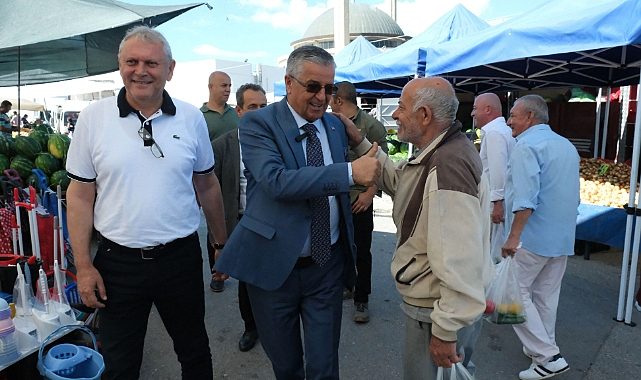 Kemer Belediye Başkanı Necati Topaloğlu, Pazartesi günleri ilçe merkezinde kurulan sebze ve meyve pazarında tezgah açan esnafı ziyaret etti.