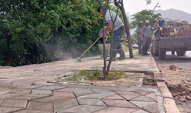Kemer Belediyesi Fen İşleri Müdürlüğü ekipleri, ilçe genelinde bozulan ve tahrip olan yol ve kaldırımlarda tamir işlemi gerçekleştiriyor.