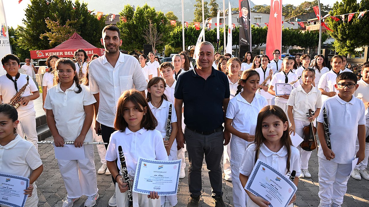 Proje Koordinatörü Şef Furkan Üstündağ yönetimindeki, Kemer Belediyesi ATSO Eğitim ve Sanat Merkezi kursları ile Göynük Ahucum Düğün Salonu'nda düzenlenen karate ve kick boks yaz kursları kapanış programına, Kemer Belediye Başkan Vekili Mehmet Akın, CHP Kemer İlçe Başkanı Sedat Karakaya, Belediye Başkan yardımcıları Emin Gül, Semih Top ve Mehmet Derya Baytekin, ATSO danışmanı Ercan Mutlu, Kemer Şoförler ve Otomobilciler Odası Başkanı Mustafa Tıraş, Belediye Meclis üyeleri Cansın Efir ve Ali Akar, Çamyuva Muhtarı Rıdvan Vicir, Kuzdere Muhtarı Serkan Günay, daire müdürleri ve vatandaşlar katıldı. Saygı duruşunda bulunulmasının ardından Kemer Belediyesi Cumhuriyet Orkestrası tarafından İstiklal Marşı’mızın okunması ile başlayan programda, Kemer Belediyesi ile Kemer Milli Eğitim Müdürlüğü ve Halk Eğitim Müdürlüğü iş birliğince Kemer Belediyesi ATSO Eğitim ve Sanat Merkezi'nde açılan yaz kurslarına katılan 500 kursiyere sertifikaları verildi. Sertifika töreni öncesi bir konuşma yapan Kemer Belediyesi Başkan Vekili Mehmet Akın, sözlerine katılımcılara Kemer Belediye Başkanı Necati Topaloğlu’nun selamlarını ileterek başladı. Akın sözlerini şöyle sürdürdü; “Başkanımızın Eğitim Varsa Gelecek Var projesi ile hayata geçirdiği birçok etkinlik bulunuyor. Bu proje kapsamında ATSO Eğitim ve Sanat Merkezi çocuklarımızı sokaktan eğitime ve birçok enstrümanı kullanmaya yöneltmektedir. Kemer Belediyesi ve İlçe Milli Eğitim Müdürlüğümüz projesi kapsamında öğrencilerimiz burada iki ay boyunca eğitim aldılar. Emeği geçen Furkan hocamıza, diğer eğitimcilere ve velilerimize teşekkür ediyor yeni eğitim ve öğretim sezonunun hayırlara vesile olmasını diliyorum” dedi. Emin Akar yönetimindeki karate ve Volkan Kaplan yönetimindeki kick boks yaz kursları, Dans Öğretmeni Serap Türkoğlu, Drama öğretmeni Hilal Çiçek, keman, melodika ve gitar öğretmeni Sema Dokgöz yönetiminde eğitimlerini tamamlayan kursiyerler sırasıyla sahneye çıkarak, hünerlerini sergilediği etkinlikte drama öğrencilerinin Parla Yüzüncü yıl marşını işaret dili ile seslendirmeleri izleyenler tarafından uzun süre alkışlandı.