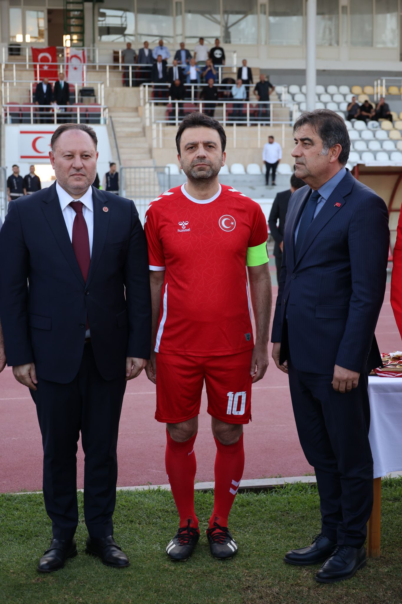 Kuzey Kıbrıs Türk Cumhuriyeti’nin kuruluşunun 42.yılı münasebetiyle düzenlenen dostluk maçı, Lefkoşa Atatürk Stadyumunda oynandı. Karşılaşma öncesi düzenlenen törende konuşan Cumhuriyet Meclisi Başkanı Ziya Öztürkler, iki parlamentonun eski ve yeni milletvekillerine teşekkür ederek oynanan dostluk maçının önemine değindi. Türkiye ile Kuzey Kıbrıs Türk Cumhuriyeti arasındaki bağların sarsılmaz olduğunu vurgulayan Öztürkler, “Buradan bizlere uygulanan haksız izolasyonların kaldırılmasını talep ediyor ve Kuzey Kıbrıs Türk Cumhuriyeti’nin tanınması çağrılarımızı yineliyoruz” ifadelerini kullandı.