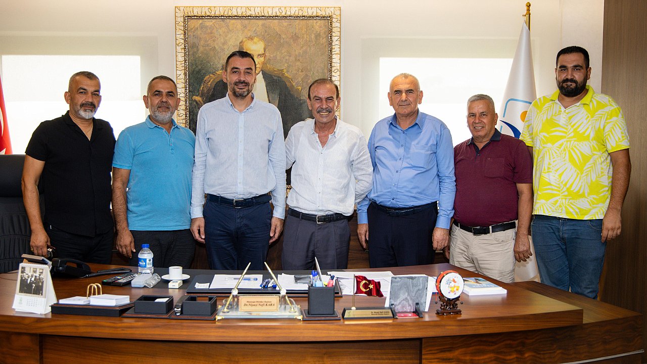 Manavgat Ziraat Odası Başkanı Rasim Metin ve Manavgat Şoförler Odası Başkanı Mehmet Muammer Ünal, oda yönetim kurulu üyeleriyle birlikte Manavgat Belediyesi’ni ziyaret etti. Belediye Başkan Vekili Av. Mehmet Çiçek’in ev sahipliğinde gerçekleşen görüşmede, Manavgat’ın tarımsal üretim kapasitesinin artırılması, çiftçilerin desteklenmesi ve şehir içi ulaşımda vatandaşlara daha kaliteli hizmet sunulmasına yönelik güncel projeler ele alındı.