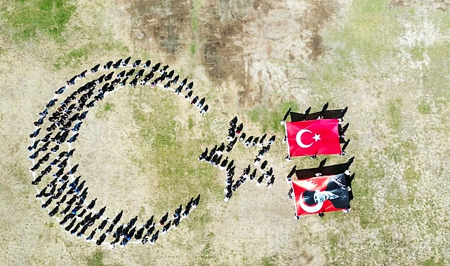 ÖĞRENCİLERDEN TÜRK BAYRAĞI KOREOGRAFİSİ