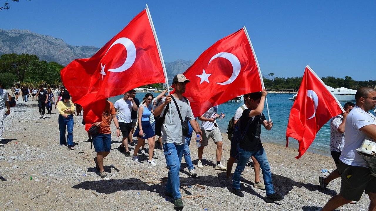 DENİZDE DEV TÜRK BAYRAĞI AÇILDI