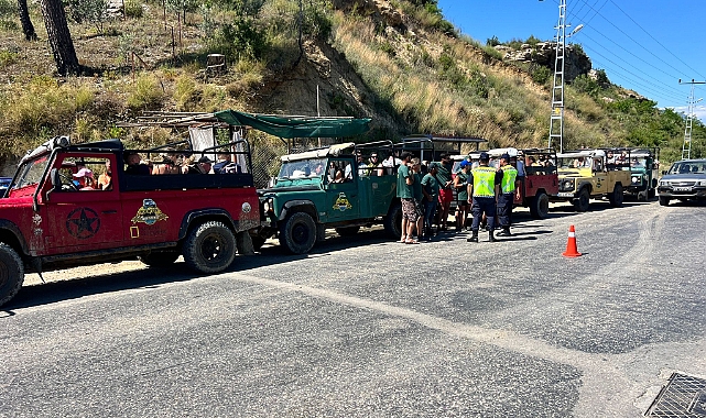 Manavgat ilçe J.K.lığı Trafik Jandarması timlerince Manavgat ilçesi Oymapınar Mahallesinde Safari araçlarına yönelik denetimler yapıldı.